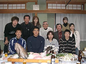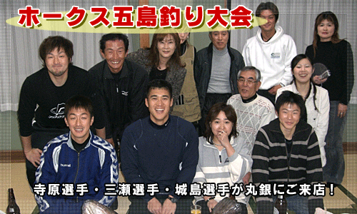 | 1月14日、寺原選手・三瀬選手・城島選手の三選手が丸銀にご来店。夜は丸銀に宿泊していただき、翌日は五島にて釣りを楽しみました。クロ大漁です! |